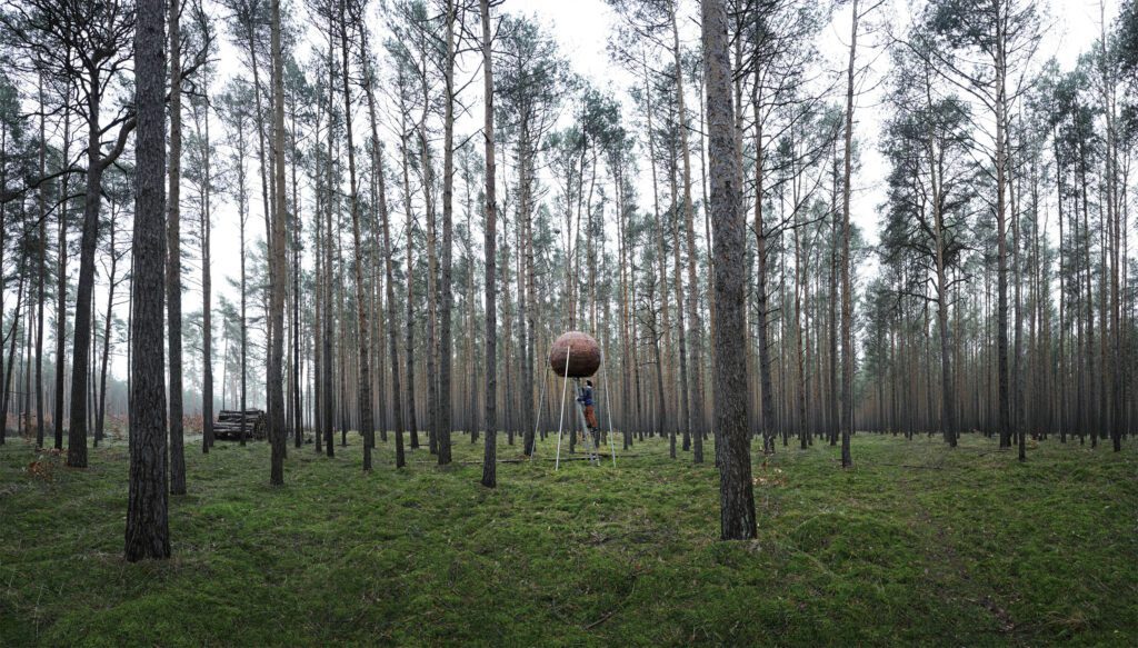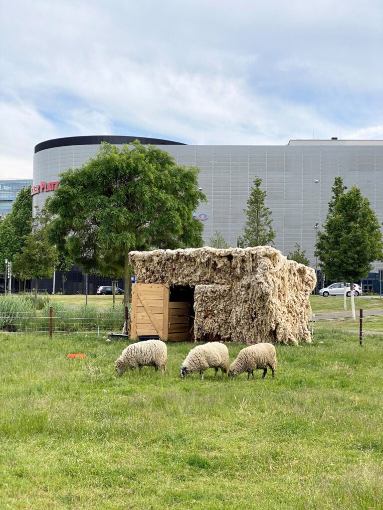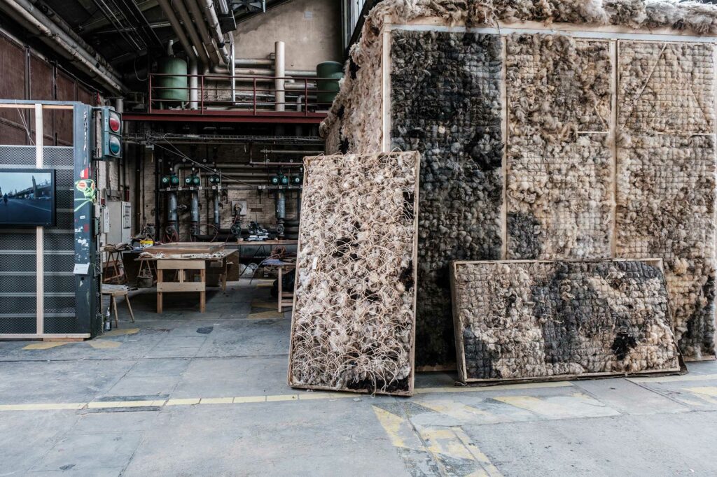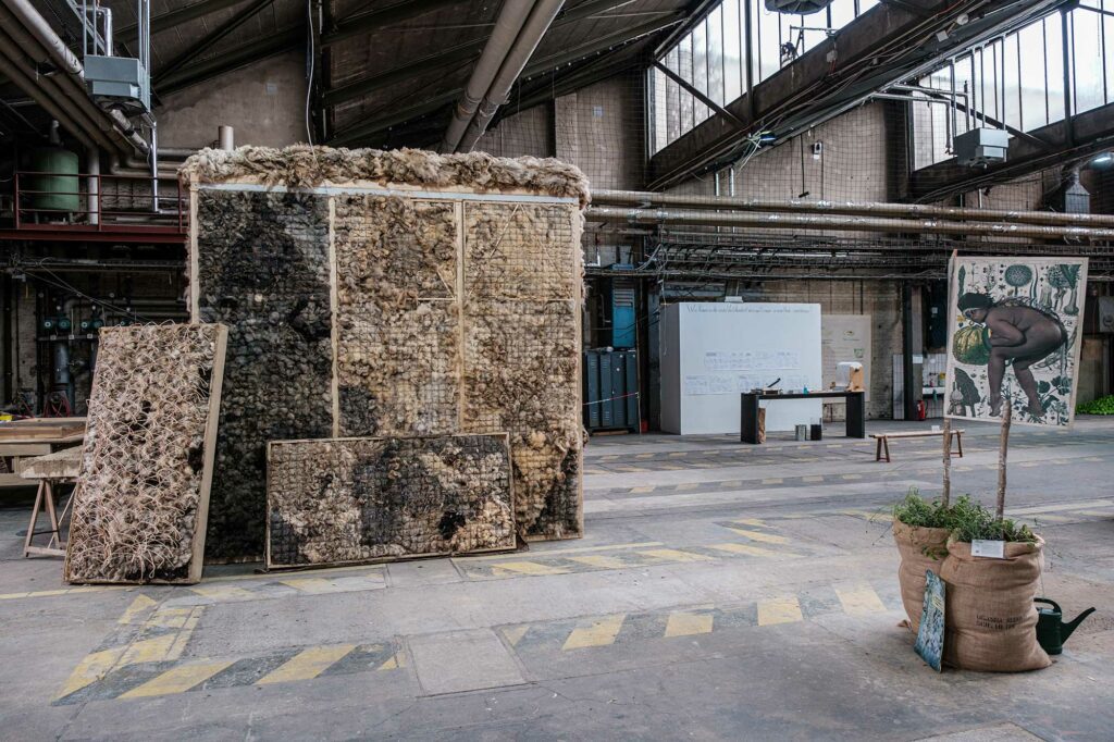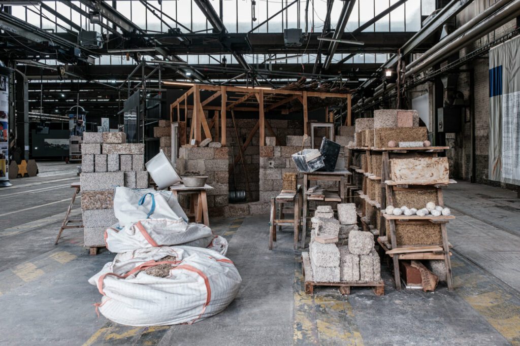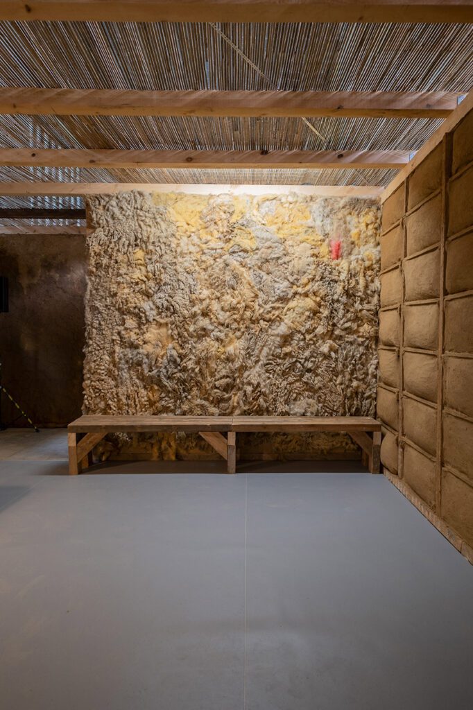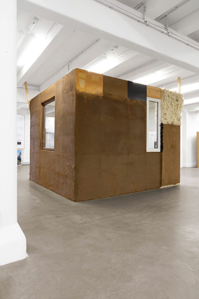 Künstler:innen und Wissenschaftler:innen der Ausstellung ZUR NACHAHMUNG EMPFOHLEN! haben neue Verbindungen zwischen ökologischen Baustoffen wie Schafwolle, Pilzmyzel, Hanf, Lehm und Rinde erforscht und weiterentwickelt. Es eröffnen sich ungeahnte Potentiale für eine nachhaltige Bauwirtschaft – nicht zuletzt beim Wiederaufbau in Kriegs- und Katastrophengebieten. Die konventionelle Bauindustrie hat einen immensen Anteil am Klimadesaster. Sie ist für 30% des CO2-Ausstoßes, 40% des Energieverbrauchs, 50% des Ressourcenverbrauchs, 60% des Abfallaufkommens und 70% der Flächenversiegelung verantwortlich (Quelle Baukultur+). Ohne einen Wandel dieses Sektors durch Kreislaufwirtschaft und nachwachsende Baustoffe wird eine nachhaltige Zukunft nicht möglich sein.